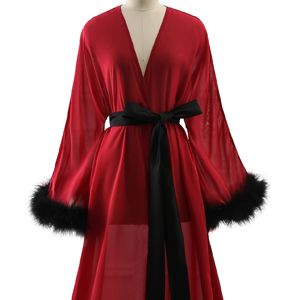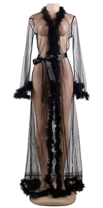 Silky lightweight lounge robe, perfect for lounging at home, bed time or a bridal party. Gorgeous and ultra glamorous available in manny colors. Shop: Molisa Women Sexy Feather Long Wedding Scarf Illusion Nightgown Robe