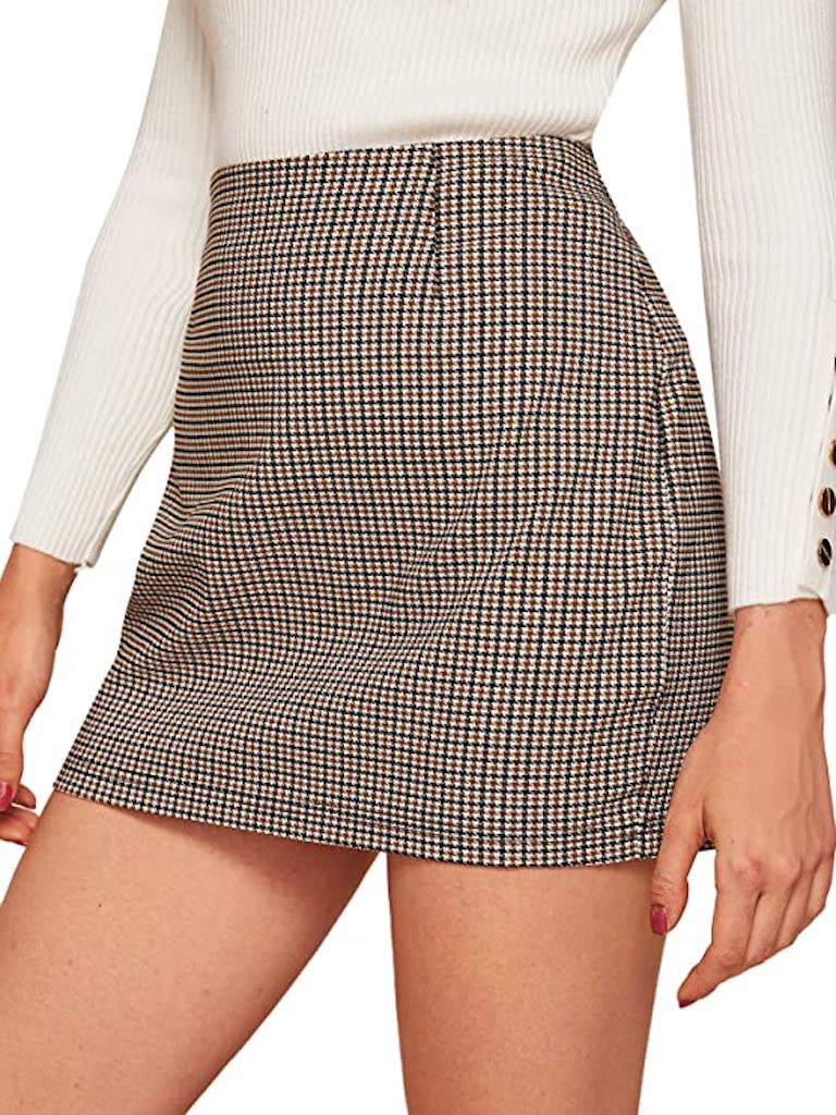 Floerns Women’s Plaid High Waist Bodycon Mini Skirt